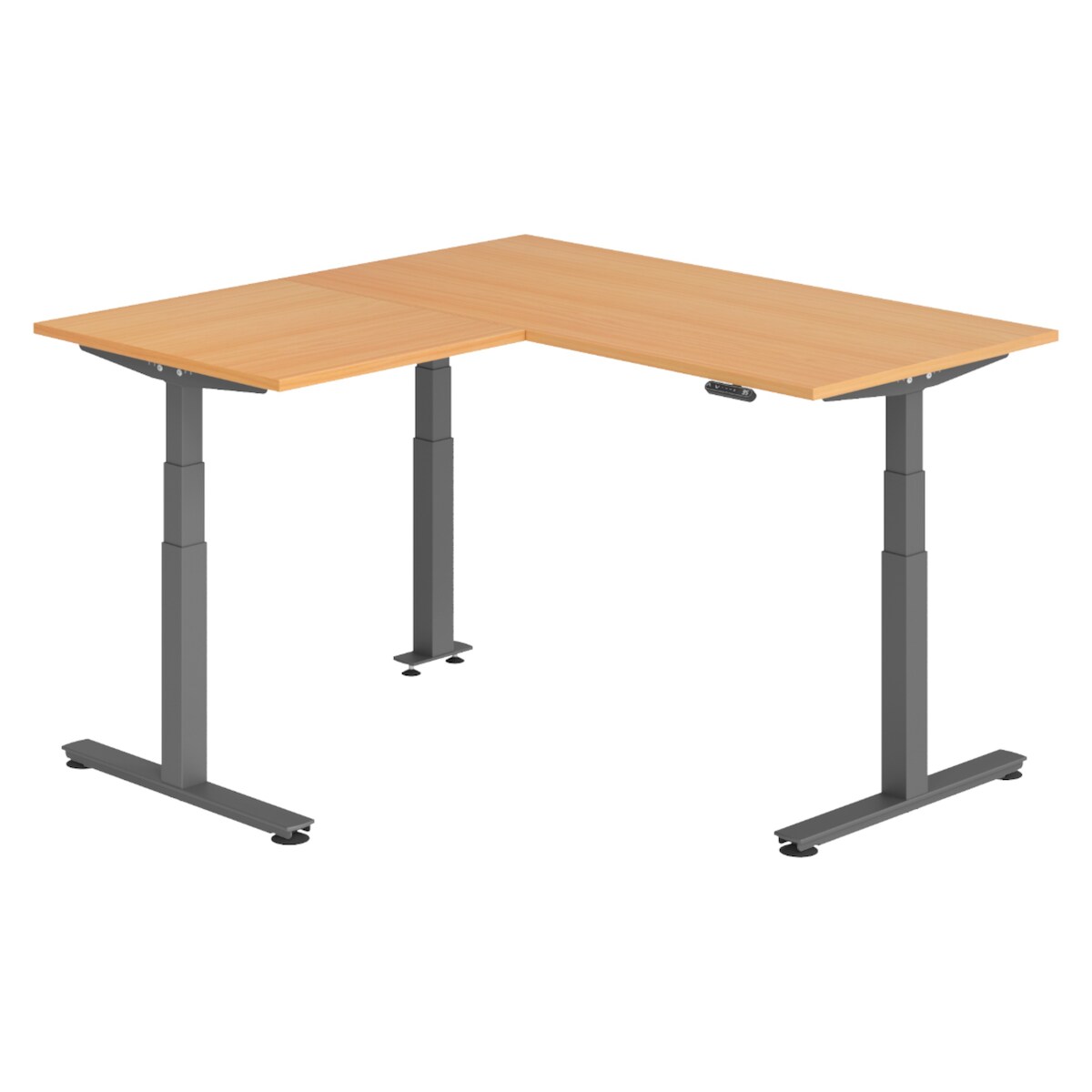 bümö Eckschreibtisch elektrisch höhenverstellbar L-Form: 160 x 160 cm in Buche, Gestell graphit - Stehschreibtisch mit Memory-Steuerung, elektrischer