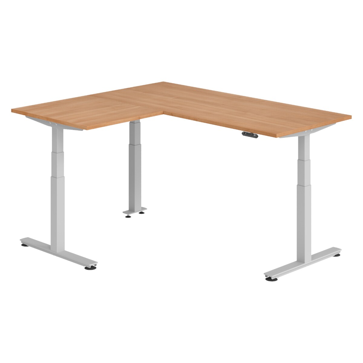 bümö Eckschreibtisch elektrisch höhenverstellbar L-Form: 180 x 160 cm in Nussbaum, Gestell silber - Stehschreibtisch mit Memory-Steuerung,