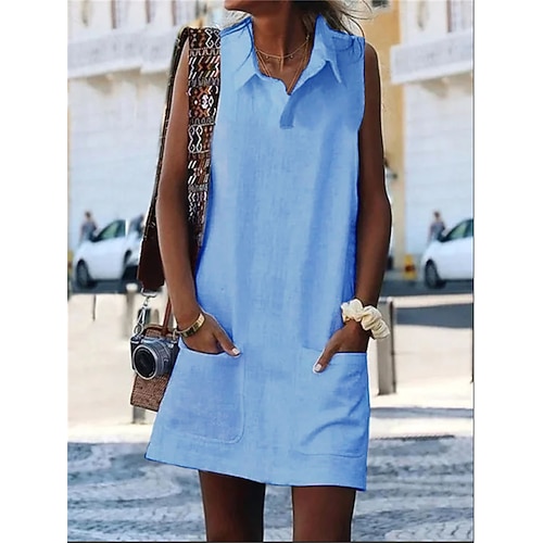Per donna Blu Nero Bianco Estate Primavera Mini Abito Abiti in cotone e lino Abito Camicia Vestito Casual Essenziale Moderno Quotidiano Weekend Vestibilità comoda Semplice Colletto a Camicia