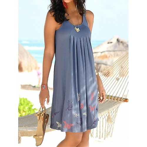 abito casual da donna abito canotta stampa floreale geometrica scollo a U mini abito elegante appuntamento quotidiano senza maniche estate