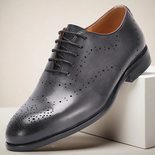 scarpe eleganti da uomo in pelle nera: design classico con dettagli traforati, perfette per occasioni formali e matrimoni