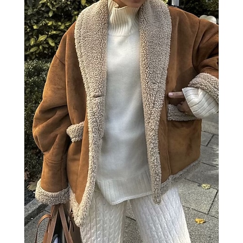 Per donna Giacca in Pile Cappotto Teddy Giacca con Cappuccio Caldo Traspirante Cerniera Tasca Foderato in pile Casual Stile da Strada Blocco di colori Vacanza Streetwear Abbigliamento quotidiano