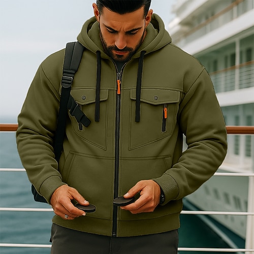 Per uomo Felpa con cappuccio Felpa con cappuccio a zip intera Felpa con cappuccio in pile Tattico Nero Bianco Vino Blu marino Blu Reale Con Cappuccio Semplice Cerniera Tasca Sport Outdoor