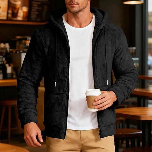Per uomo Felpa con cappuccio a zip intera Felpa con cappuccio e zip Sherpa morbido Giacca in Pile Felpa con cappuccio in pile Nero Vino Blu Marrone Grigio scuro Con Cappuccio Semplice Con zip