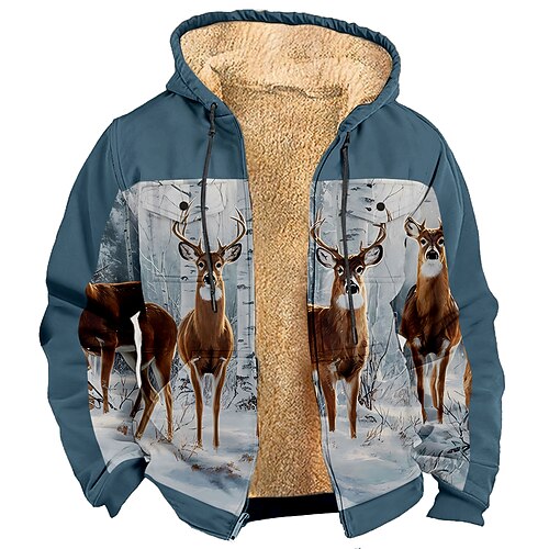 Per uomo Cervo Pile Felpa con Cappuccio Giacca di pelle Felpa Moda Cool Quotidiano Vintage Retrò Con Cappuccio All'aperto Regalo Caccia Blu Nero Marrone Cerniera Tasca Autunno Inverno progettista S M