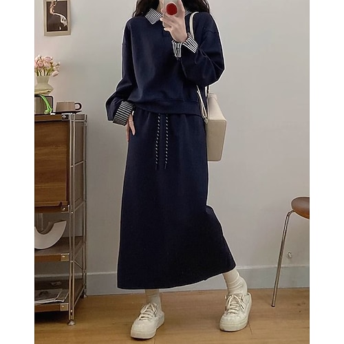 Per donna Set di tute e pullover Tuta da 2 pezzi Abiti da salotto con tasca Tinta unita Completo Abbigliamento Autunno Blu scuro Grigio Escursionismo Lavoro Corsa Manica Lunga Sport Abbigliamento