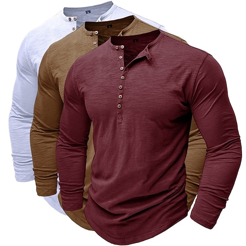 Maglietta Henley da uomo a maniche lunghe, tinta unita, alla moda, casual, confezione multipla da 3 pezzi, per attività all'aperto, casual, estate, primavera, blu, bianco e nero.