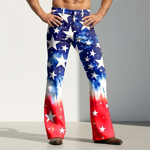 Per uomo Bandiera degli Stati Uniti Patriottico 250° anniversario degli Stati Uniti Pantaloni Pantaloni da discoteca Pantaloni a zampa d'elefante anni '60 e '70 Misura del girovita medio Vintage Retrò