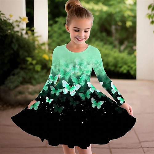 ragazze' 3D Farfalla Fiore Abito Manica Lunga Estate Primavera Vacanza Quotidiano Ferie Principessa Bello Dolce Bambini 4-12 Anni Vestito Casual Abito a trapezio Lunghezza al ginocchio Vestibilit