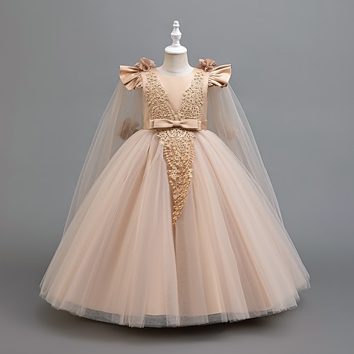 Bambino Da ragazza Abito da cosplay Vestito da festa Tinta unica Senza maniche Prestazioni Matrimonio Natale Retato Schiena scoperta Collage Bellissimo Dolce Poliestere Maxi Vestito da festa Vestito