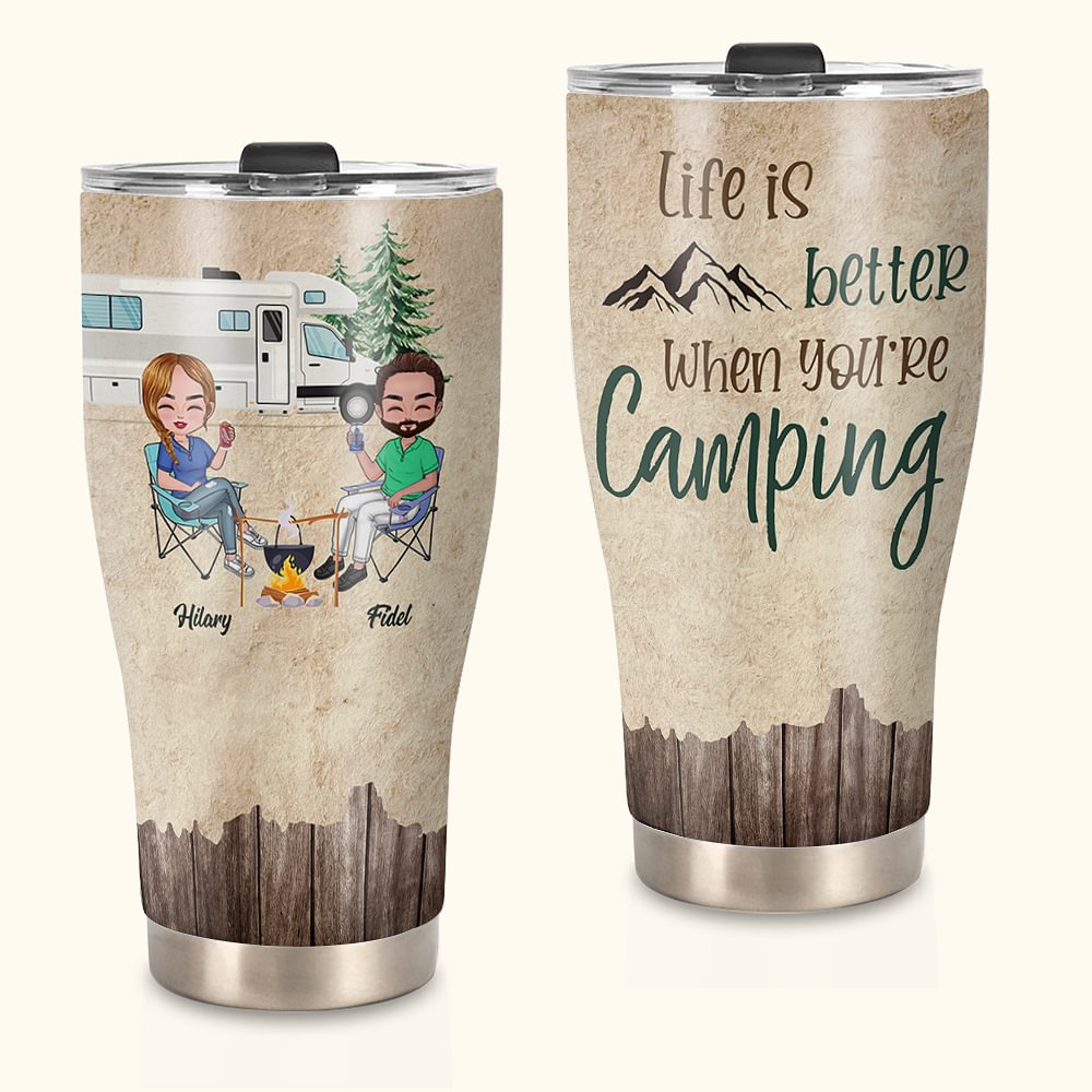 Vaso curvo personalizado Life Is Better When You're Camping Regalo de San Valentín para pareja de camping