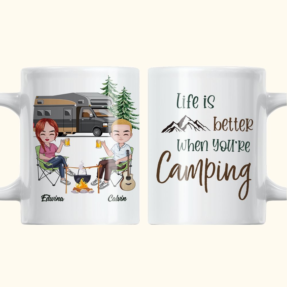 Taza personalizada de cerámica blanca de 11oz o 15oz "Life is Better When You're Camping" Regalo de Pareja