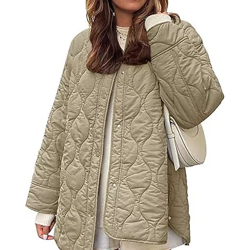 Per donna Giacca imbottita Giacca trapuntata Giacca Casual Confortevole Traspirante Tasca Bottoni Casual Semplice Vacanza Streetwear Casuale Abbigliamento quotidiano Monopetto Regolare Senza colletto
