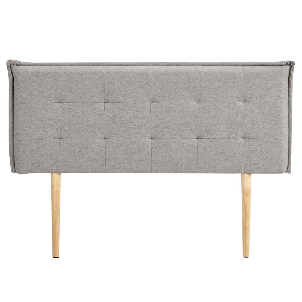 Tête de lit capitonnée en tissu sur pieds en bois, gris, 140 cm