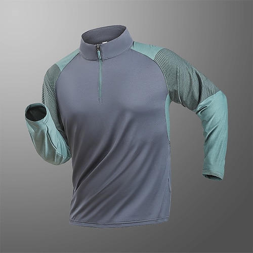 Per uomo maglietta T-shirt da escursione Manica lunga Chiusura lampo quarto Maglietta Maglietta con muscoli Maglietta elasticizzata per bodybuilding Esterno Asciugatura rapida Allenarsi Morbido