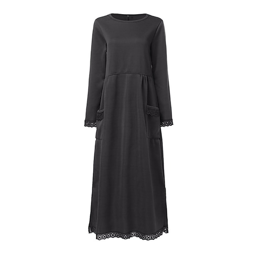 Per donna Abito Lungo Maxi Abito Abito con Cappuccio Moda Moderno All'aperto Vacanza Uscire Vestibilità regolare Semplice Manica Lunga Girocollo Nero Verde militare Rosso Grigio chiaro Autunno Inverno