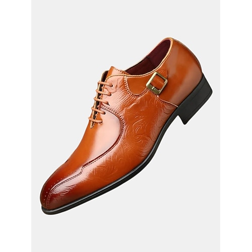 oxford da uomo di lusso in similpelle lucida color cuoio con motivo floreale in rilievo - perfette per occasioni formali e riunioni di lavoro