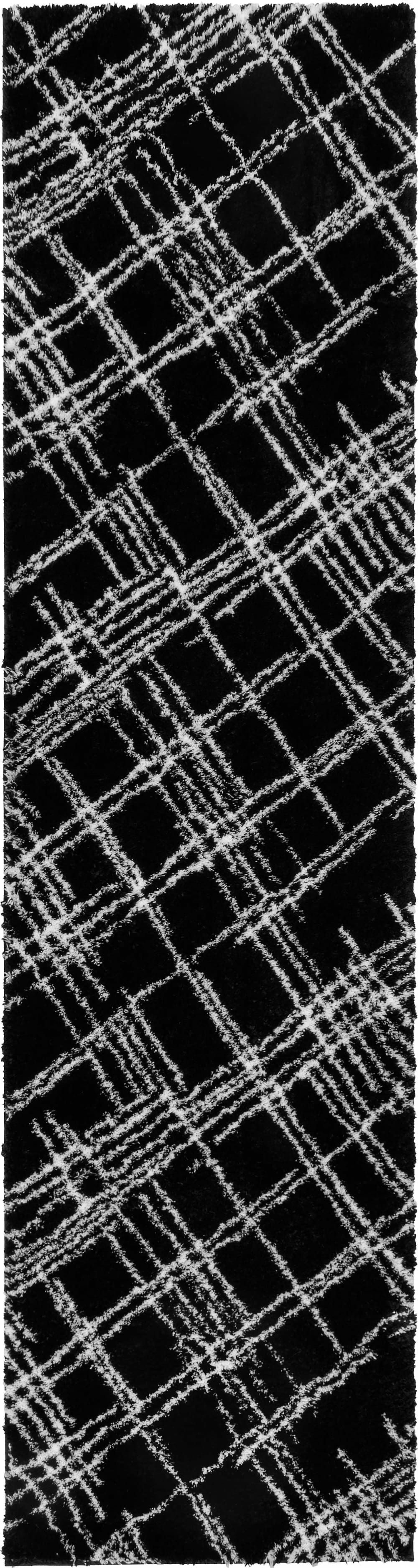 Tappeto Shaggy motivo geometrico nero astratto - 80x300 cm