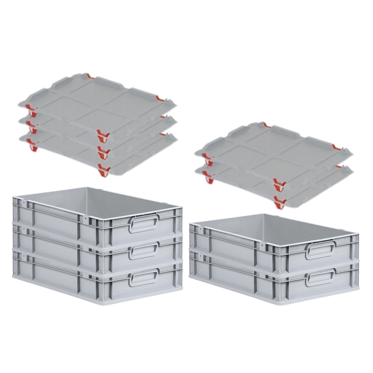 PROREGAL SparSet 5x Eurobox NextGen Economy mit Auflagedeckel & 4x Verschlüsse Rot, Griffe zu, HxBxT 12x40x60cm, 23L, Eurobehälter, Box