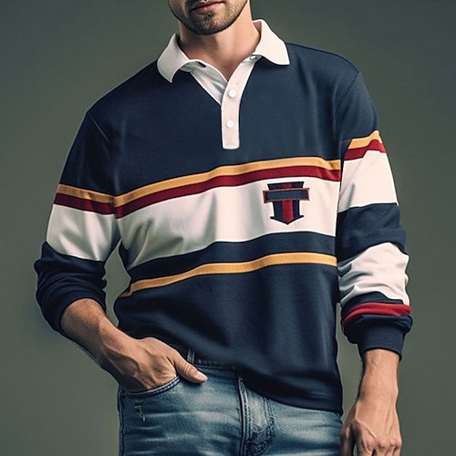 Per uomo A righe Polo da rugby Manica Lunga Magliette polo Con cerniera Casual All'aperto Casual Quotidiano Abbigliamento casual alla moda 3D Stampato Autunno Inverno Rosso Blu marino Blu scuro