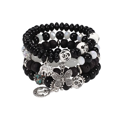 Set di braccialetti natalizi da donna in perline acriliche bohémien, design multicolore con ciondoli, regalo perfetto per le feste, accessorio festoso ed elegante per abbigliamento casual e feste