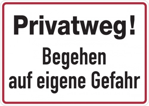 Hinweisschild, Privatweg! Begehen auf eigene Gefahr, Aluminium, 250 x 350 mm - 350x250x0.45 mm Aluminium geprägt