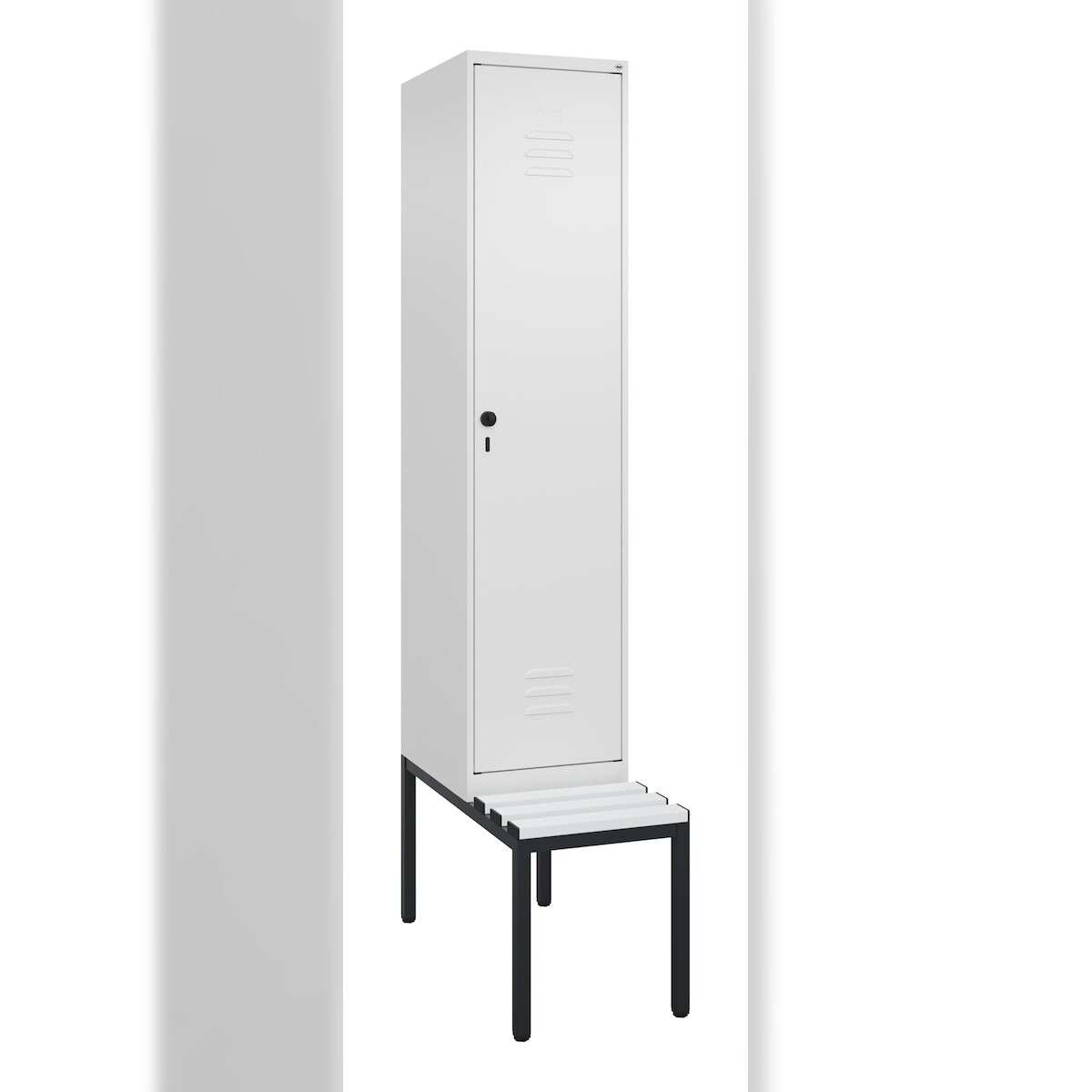 C+P Spind Classic PLUS, Kunststoff untergebaute Sitzbank, 1 Abteil, HxBxT 212x40x82cm, Sicherheitsdrehriegel, Verkehrsweiß von PROREGAL