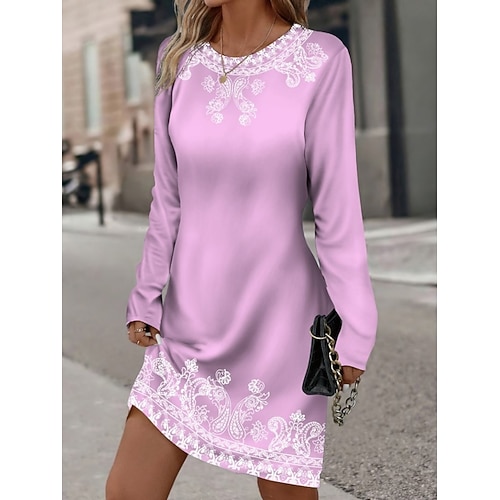 Per donna Mini Abito Vestito T-Shirt Casual Quotidiano Vestibilità regolare Grafico Manica Lunga Girocollo Nero Rosa Blu Viola Primavera Autunno
