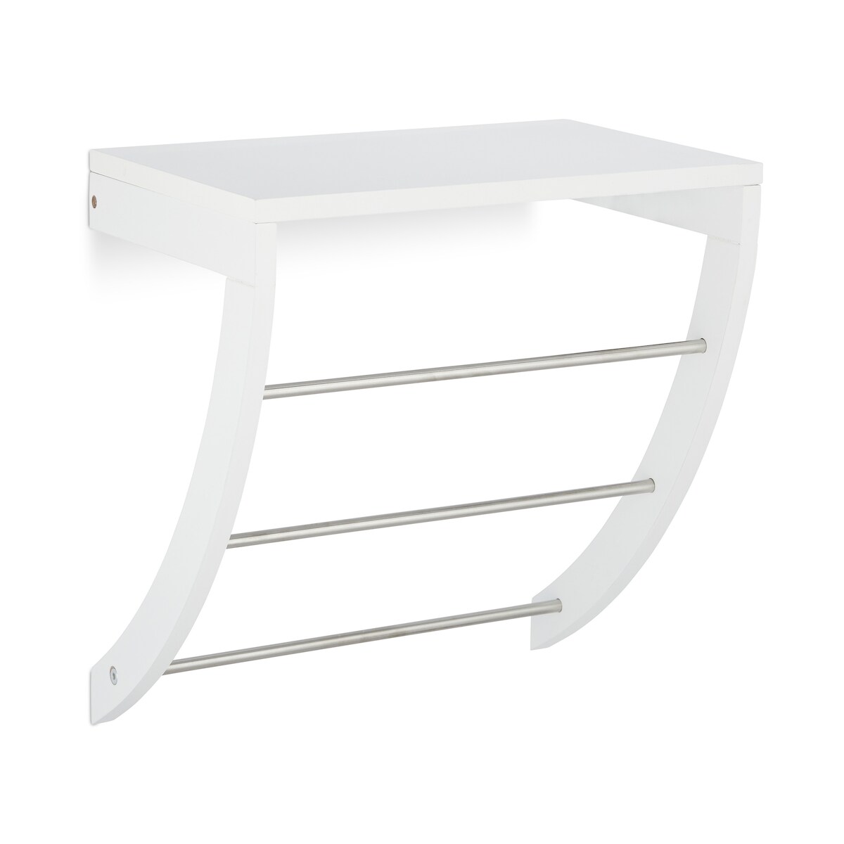 Relaxdays Wandhandtuchhalter Bad, 3 Handtuchstangen aus Edelstahl, Wandmontage, mit Ablage, HxBxT: 40 x 38 x 25 cm, weiß