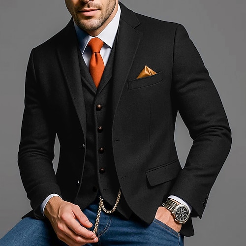 Per uomo Blazer in Tweed Colletto ad incastro Vintage Classico Ufficio Spina di Pesce Blazer Nero Grigio chiaro Vestibilità su misura Monopetto Un Bottone