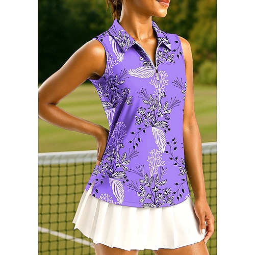 Per donna Piante Motivo Floreale Top Maglietta sportiva Polo da golf Maglia da tennis Senza Maniche Cerniera Floreale UPF50 Resistente ai Raggi UV Alta elasticità Traspirante Tennis Pickleball Corsa
