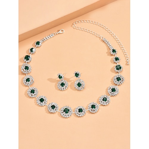 set di gioielli da donna con cristalli scintillanti: collana importante, orecchini pendenti combinazione di bracciale e anello a catena, accessori di lusso con strass per balli di fine anno, balli