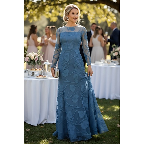 Linea ad A Lunghezza al pavimento Abito da invitata a nozze Abito Floreale Abito da sera Abito da cerimonia per signora Manica Lunga Scollo a Barca Elegante Formale Pizzo con Pizzo