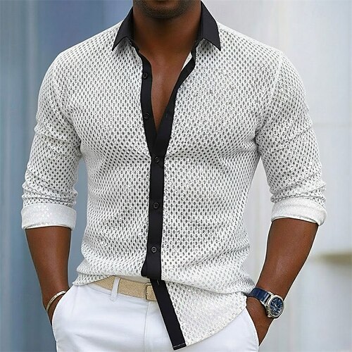 Per uomo Grafico Geometrico Blocco di colori Maglia Henley a nido d'ape Stile casual Stile classico Manica Lunga Moda Designer Essenziale Casuale Quotidiano All'aperto Primavera Primavera Autunno