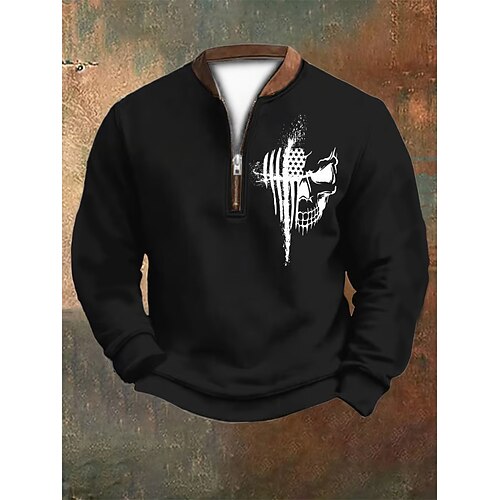 Per uomo Maglia Felpa con zip corta Nero Bianco Rosso Blu marino Grigio Mezza zip Blocco di colori Teschio Bandiera Americana Mezza cerniera Stampato Quotidiano Sport Outdoor Ferie Poliestere