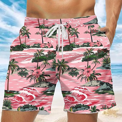 Per uomo Albero di Cocco Fiori tropicali Piante Tropicali Costumi da bagno Pantaloncini da mare Pantaloncini da Surf Misura del girovita medio Streetwear Hawaiano Vacanza Tasche Laterali fodera in