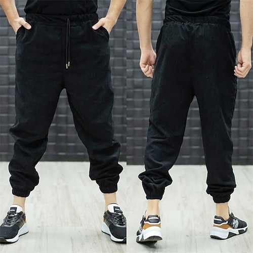 Per uomo Pantaloni da tuta Joggers Pantaloni Pantaloni in velluto a coste Coulisse Tasca Elastico in vita Semplice Comodità Traspirante Lunghezza intera All'aperto Quotidiano Ferie Vacanza Moda Nero