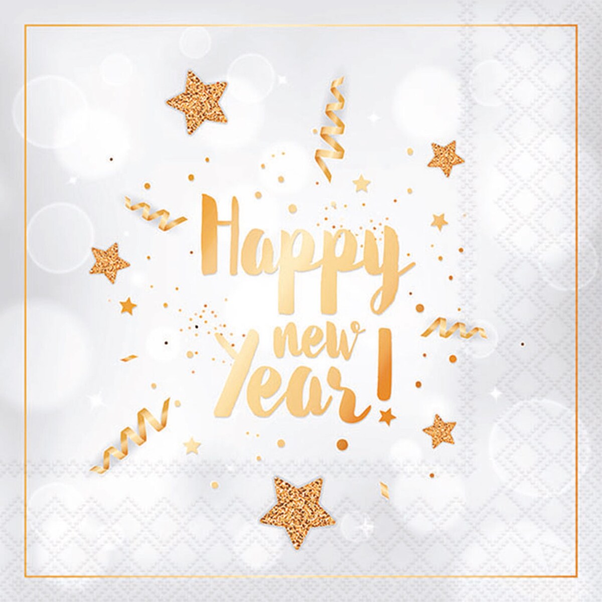 Ambiente 20 Servietten Papier 33x33cm 3-lagig - hochwertige Einweg Papierservietten mit Happy Year Motiv Silvester Servietten Tischdeko festlich Party