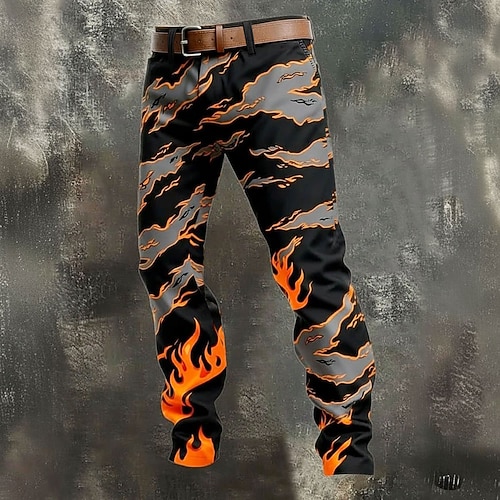 Per uomo Illusione ottica Fiamma Pantaloni Pantaloni Eleganti Pantaloni da Abito Misura del girovita medio Casual All'aperto Vacanza Pantaloni slim fit con tasche Primavera Autunno Stampa 3D Nero