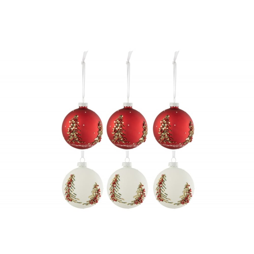 Scatola di 6 palline di Natale in vetro bianco - rosso 8.5x8.5x10 cm
