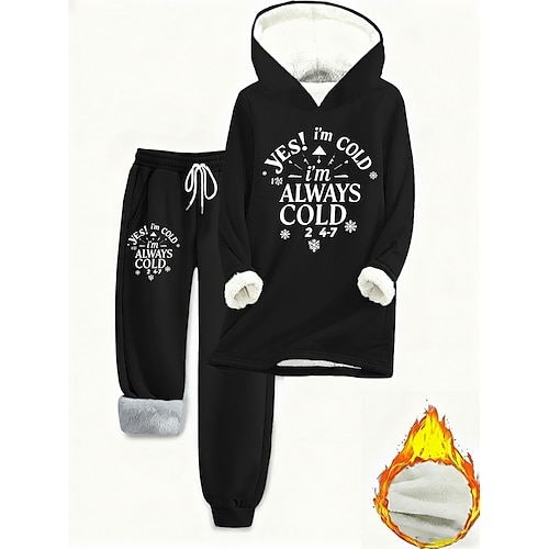 Per donna Quotidiano Elegante Set da due pezzi Tuta Set di Pantaloni Manica Lunga Con Cappuccio Grafico Lettera Coulisse Stampato Casuale Quotidiano Blu Nero Rosa Autunno Vestibilità regolare
