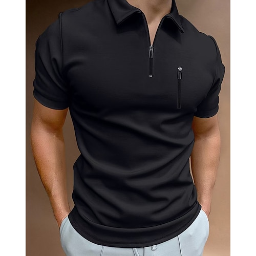 Per uomo Polo Polo con zip a un quarto Vacanza Streetwear Zip a un quarto Manica Corta Moda Essenziale Tinta unica Cerniera Estate Primavera Vestibilità regolare Nero Bianco Vino Verde militare Blu