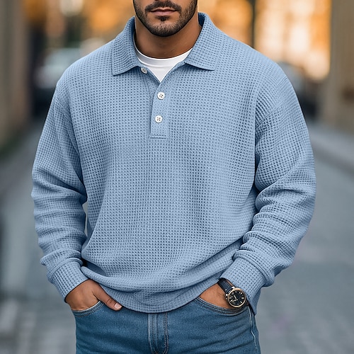 Per uomo Magliette Polo a Nido d'Ape Polo Casuale Formale Colletto fasciato Manica Lunga Moda Tinta unica Testurizzato Bottoni Puro Autunno Primavera Autunno Autunno Inverno Vestibilità regolare