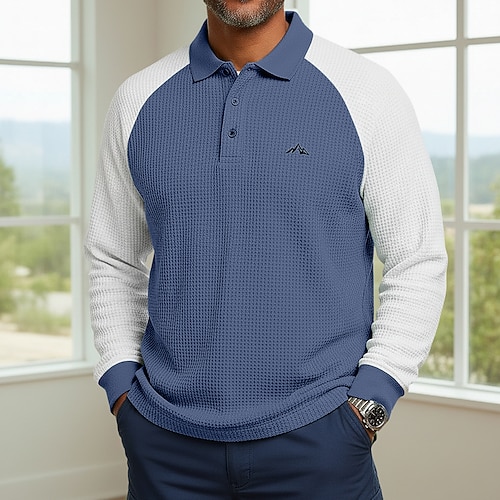 Per uomo Polo a nido d'ape Polo con bottoni Informale Sport Bavero Manica lunga Di tendenza Essenziale Color Block Pulsante Estate Standard Nero Bianco Blu reale Grigio scuro Polo a nido d'ape