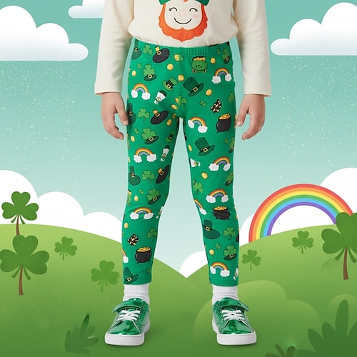Giorno di San Patrizio Ragazze 3D Arcobaleno cappello Giorno di San Patrizio Pantaloni Leggings Stampa 3D Primavera Autunno Streetwear Essenziale Collant Bambini 4-12 Anni Casuale Quotidiano