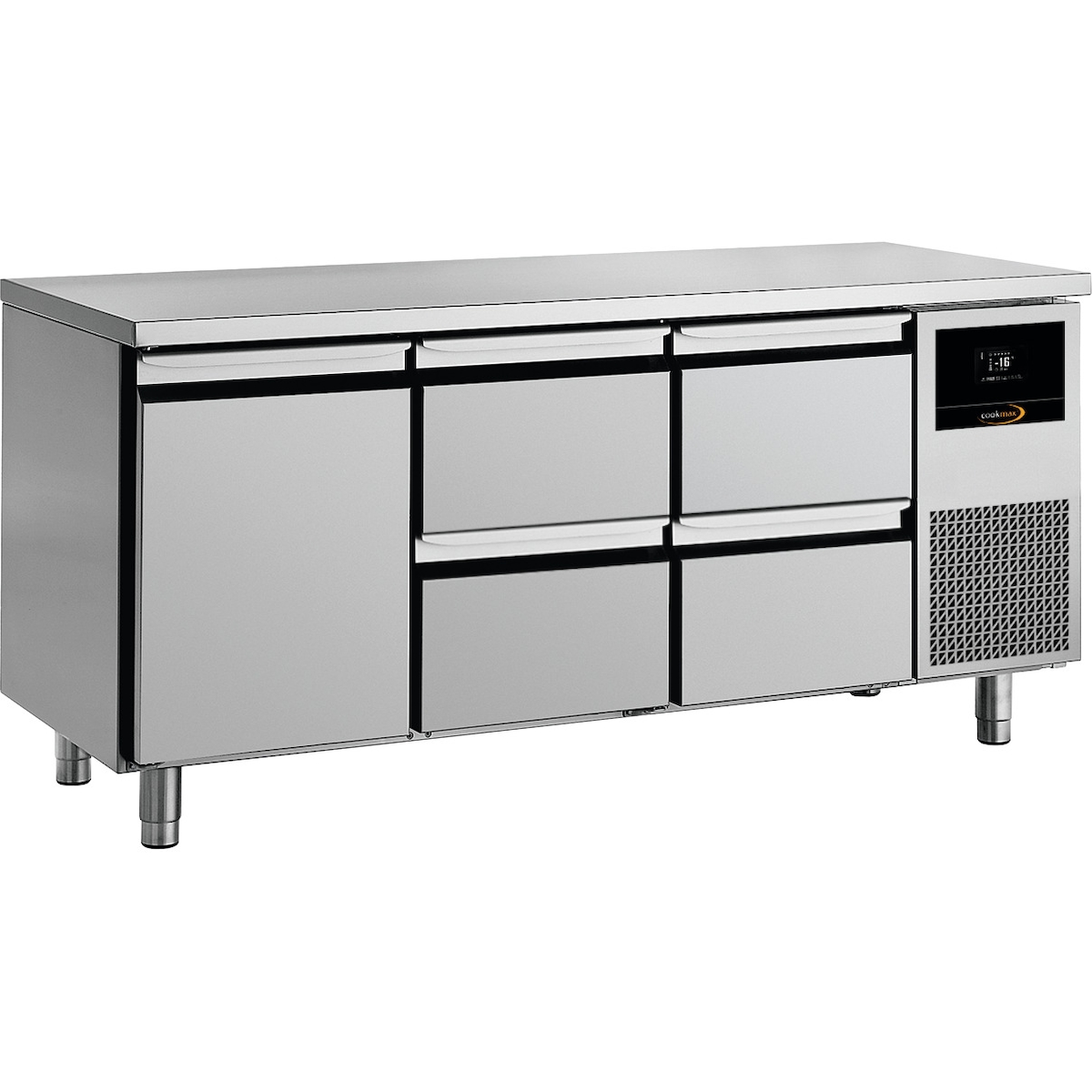 Cookmax Tiefkühltisch GN 1/1 mit 1 Tür und 4 Schubladen, ohne Aufkantung