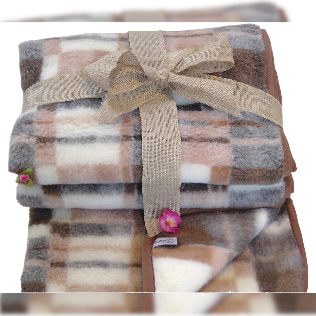 Sheep Dreams Schafwolldecke 100% Merino Schurwolle (Braunkariert, 100cmx200cm)