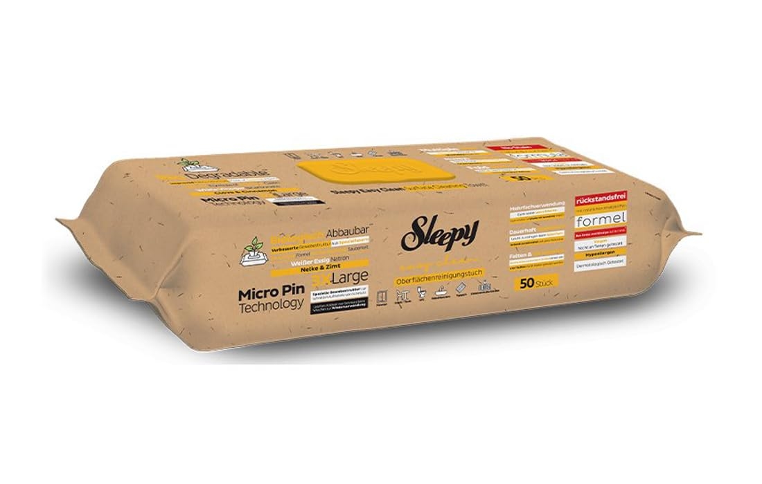 Sleepy Easy Clean Bio Oberflächen und Boden Reinigungstücher 2 in 1 (Gelb) mit Nelke & Zimt - 1 Packung x 50 Tücher