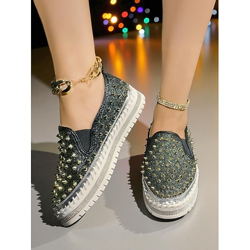 sneakers slip-on da donna con borchie glitterate - scarpe casual con plateau scintillanti e finiture in strass per feste notturne e abbigliamento da discoteca abiti da festa