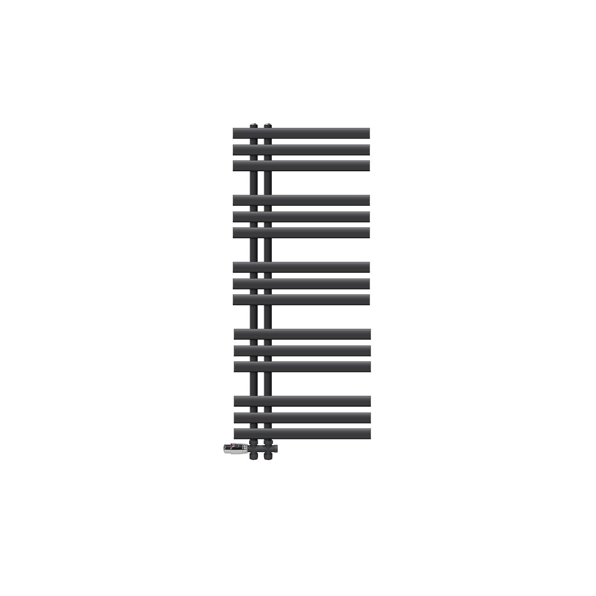 LuxeBath Badheizkörper Iron EM 500x1200 Anthrazit | Seitenanschluss, Durchgang Boden, Thermostat